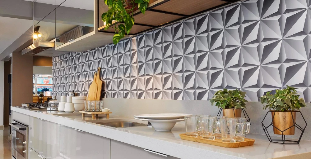 Com a enorme variação de texturas e estilos, o papel de parede é uma ótima opção para transformar o local em poucos minutos. Além disso, é fácil de colocar e de substituir, também. Para Raquel, usar esse material também ajuda você a economizar com a mão de obra, pois você mesmo pode fazer a aplicação. Outra dica da designer é usar adesivos e pastilhas. “Eles também ajudam a dar um tapa no visual de cozinhas e banheiros e normalmente, não é necessário nem mesmo remover o revestimento existente”, afirma.