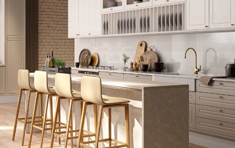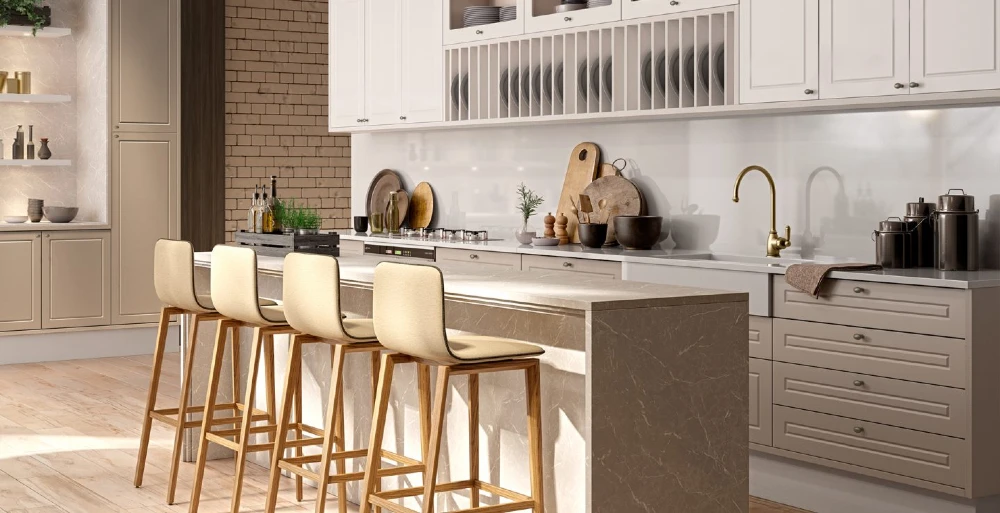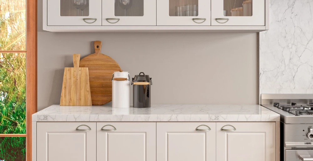 Não é à toa que o mármore ganhou ainda mais notoriedade no universo da arquitetura e da decoração. Por transmitir um ar mais sofisticado e clean, revoluciona qualquer ambiente, principalmente a cozinha. Na Italínea, os padrões Petra e Eros retomam a estética do mármore, com veios e texturas bem parecidas. Se você substituir uma bancada lisa e padrão por algo nesse estilo, ajuda a mudar a perspectiva da sua cozinha.