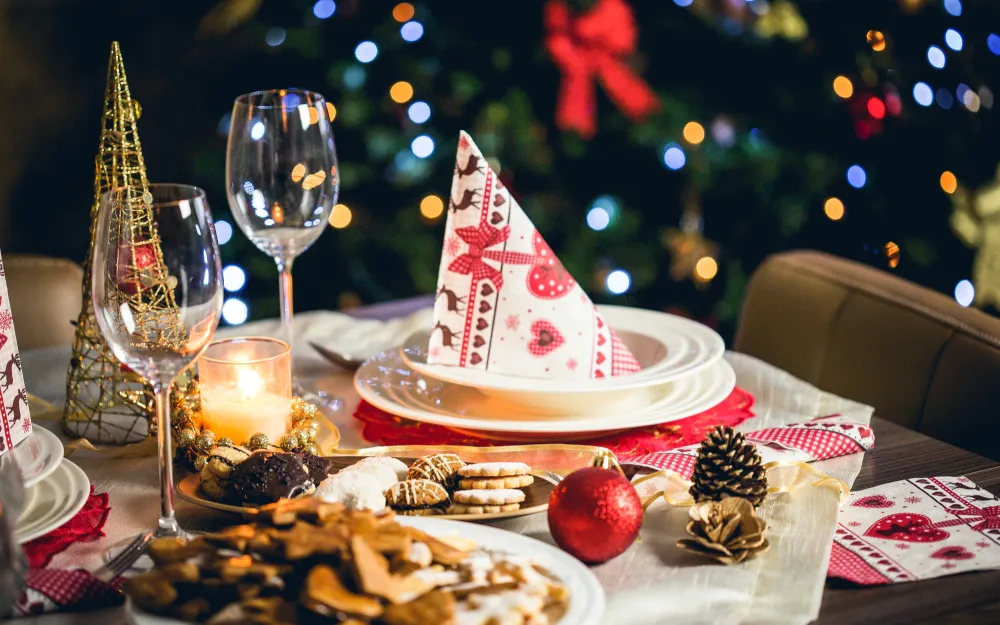 A mesa é o centro das atenções durante as festas de final de ano, por isso, capriche na decoração. Utilize jogos americanos ou toalhas temáticas, combinando com os elementos decorativos escolhidos, como velas, arranjos florais e enfeites de Natal.