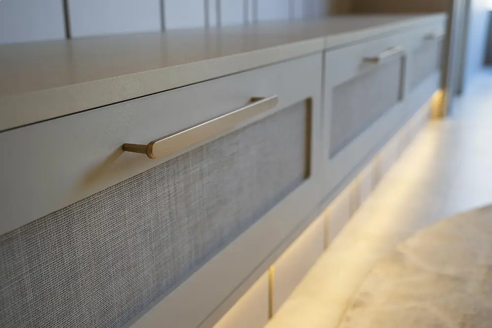 Puxadores em metal trazem sofisticação aos planejados. Imagine abrir as portas de um armário e ser recebido pelo brilho suave do cobre ou do bronze, ou do dourado. Aqui, cada puxador, cada detalhe metálico nos móveis planejados, não é apenas funcional, mas uma joia que enriquece a estética do espaço.