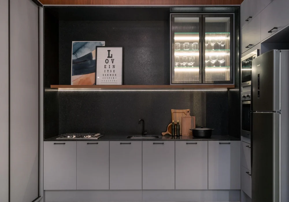 A iluminação adequada é essencial para ampliar a sensação de espaço em cozinhas pequenas, contribuindo para a segurança e a funcionalidade. Além do mais, valoriza os móveis e torna o ambiente agradável e convidativo.